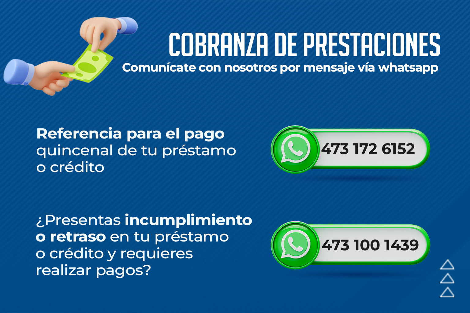 Llamar al número 473-735-1400, opción 3, o extensiones 2721 (si presentas retraso en el pago), 2751 y 2758 (si te encuentras al corriente), para solicitar la emisión de referencia para pago en sucursales Citi Banamex o en cualquier farmacia del ISSEG.